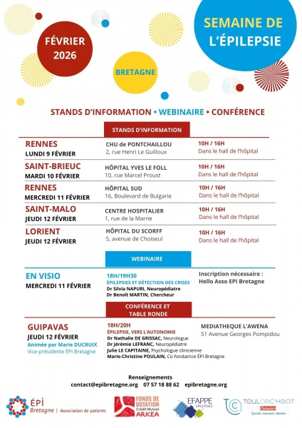 ÉPI Bretagne et ses partenaires organisent la Semaine de l’Épilepsie en Bretagne du 9 au 12 février 2026.